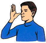 (7) 手を垂直にして親指を鼻につける 日本では全く使われませんが、ヨーロッパ・アメリカではお馴染みのジェスチャーです。これは多くの国で「愚弄」や「嘲笑」を意味するしぐさです。このしぐさは英語で「nosethumb」、フランス語では「pieddenez」といい、もう一方の手を付け足すときもあります。ちなみに、ビルマでは同じジェスチャーで「悪臭」を意味します。 |